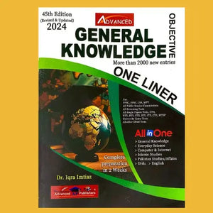 Discover the power of knowledge with the 45th edition of ‘General Knowledge One Liner’ by Dr. Iqra Imtiaz. This updated guide is perfect for anyone preparing for competitive exams or looking to improve their general knowledge. Whether you're studying for PPSC, FPSC, CSS, MPT exams, or preparing for tests like NTS, BTS, UTS, JTS, STS, CTS, or MTSP, this book is designed to help you succeed. Packed with key facts and figures, it provides a quick and efficient way to learn. Key Features: