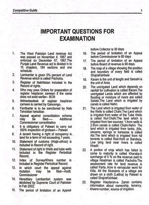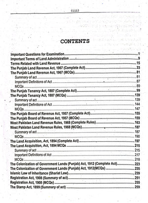 - Revenue Laws: Punjab Tenancy Act (1887), Land Acquisition Act (1894), Punjab Land Revenue Act Complete (1967), Punjab Board of Revenue Act (1957) & Many Others