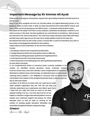 Stay ahead of the curve with the Nearpeer MDCAT Supplement, specially designed to cover the new topics introduced in the latest PMDC syllabus. This high-impact supplement includes subject-wise practice MCQs—Biology, Chemistry, Physics, English, and Logical Reasoning—structured in Easy, Moderate, Hard, and Topper’s Drill levels to match the updated MDCAT pattern.