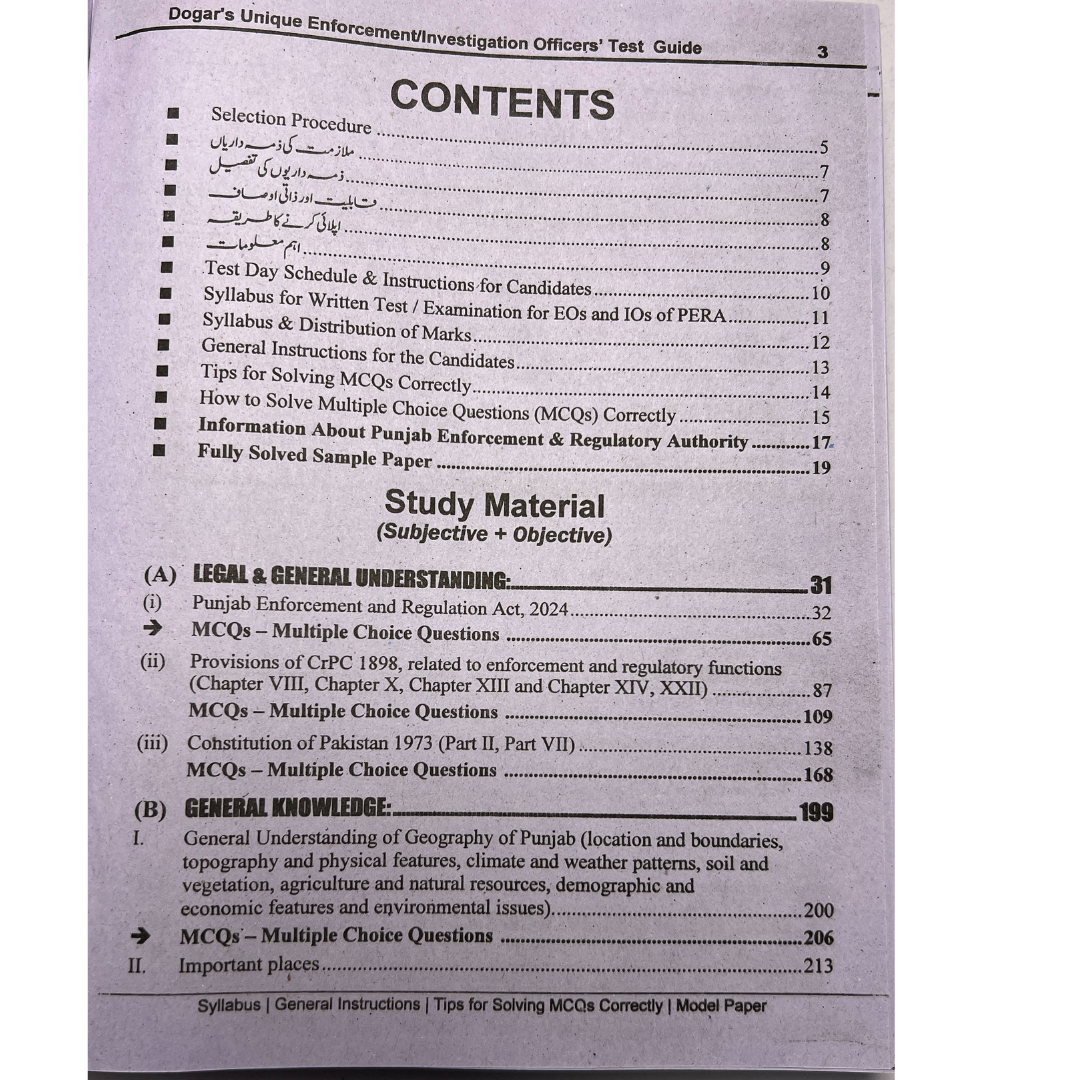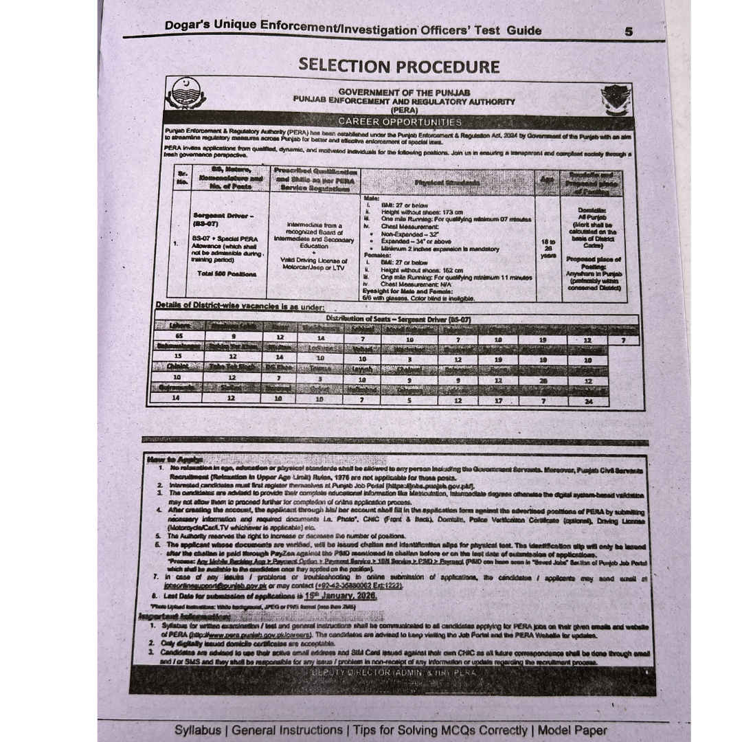 Prepare with confidence for the PERA Enforcement Officer (E.O BPS-14) and Investigation Officer (I.O BPS-11) and Sergeant Driver exams with this all-in-one, expertly designed recruitment test guide. Whether you're a fresh candidate or looking to advance your career in the education sector, this book provides everything you need to secure a high score.